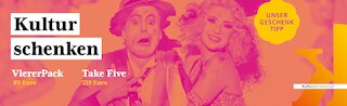 ViererPack & Take Five sind zwei Abo-Reihen mit spannenden Veranstaltungen, die einen wunderbaren Streifzug durch das Stuttgarter Kulturleben bieten. Wählen Sie Ihre Abo-Reihe. Passt ein Termin nicht: Termintausch ist möglich. Diese saisonalen Abos sind bis 31.12.2025 buchbar und enden automatisch zum 31.07.2026.